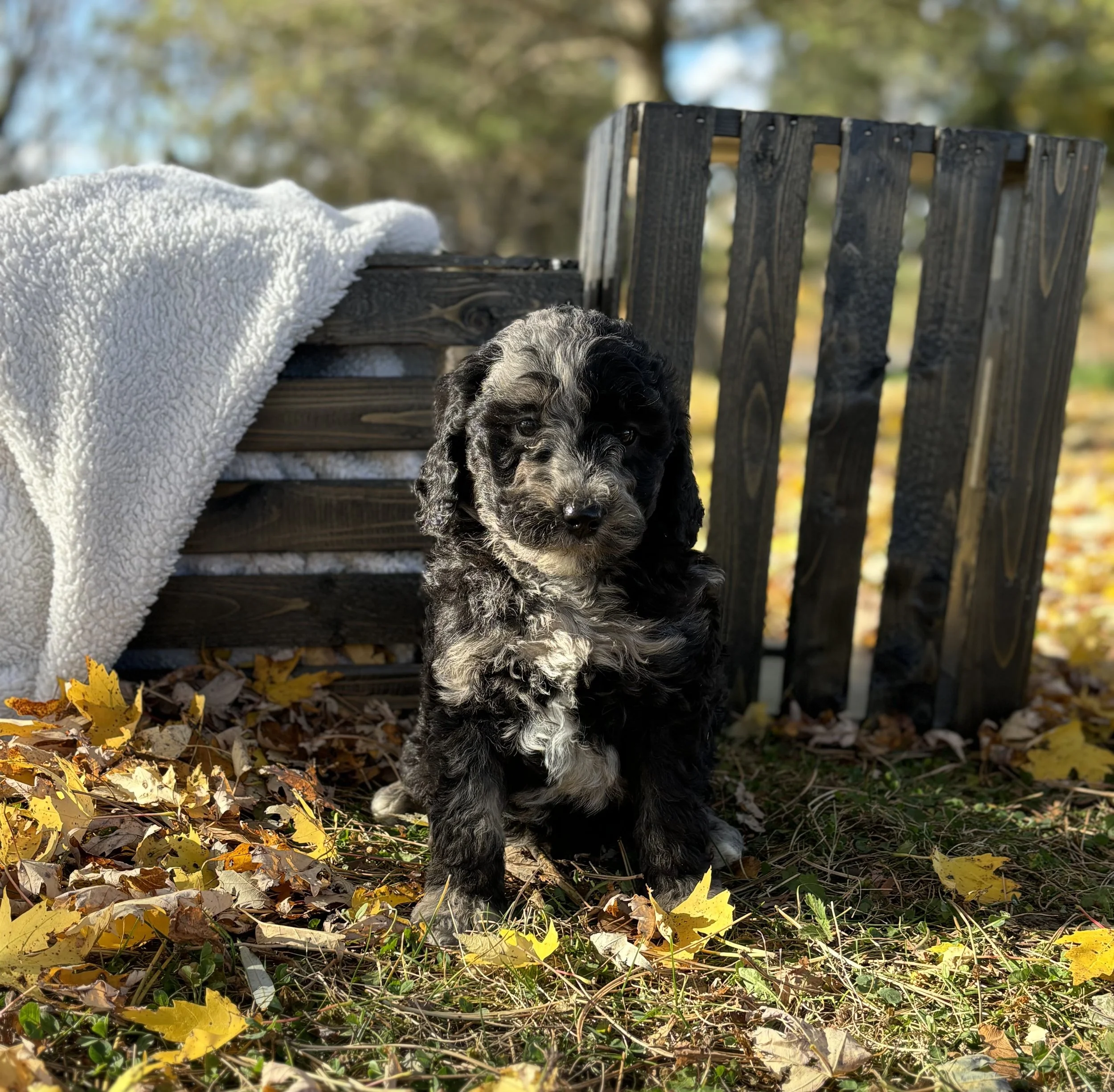 Lexi is a Bernedoodle F1, she weighs about 30lbs. Lexi loves to meet new people, and learn more about her surroundings. Check our parents page for more info.